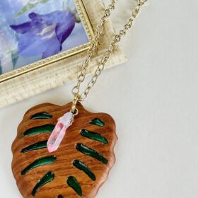 木の優し肌触りやぬくもりが感じ取れる素材に、クリスタルの氷柱カット石を組み合わせました。