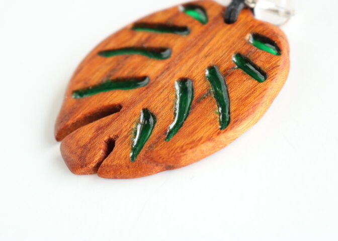 葉の緑色の部分は、レジンを流し込み色を付けております。