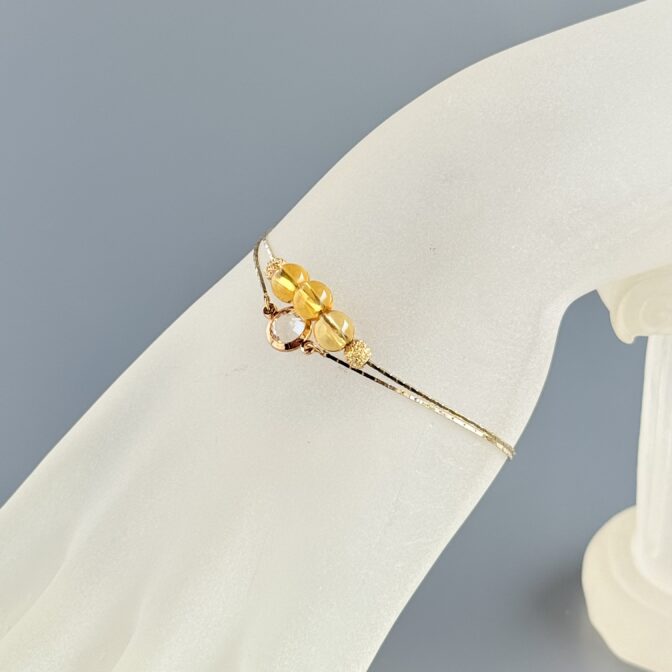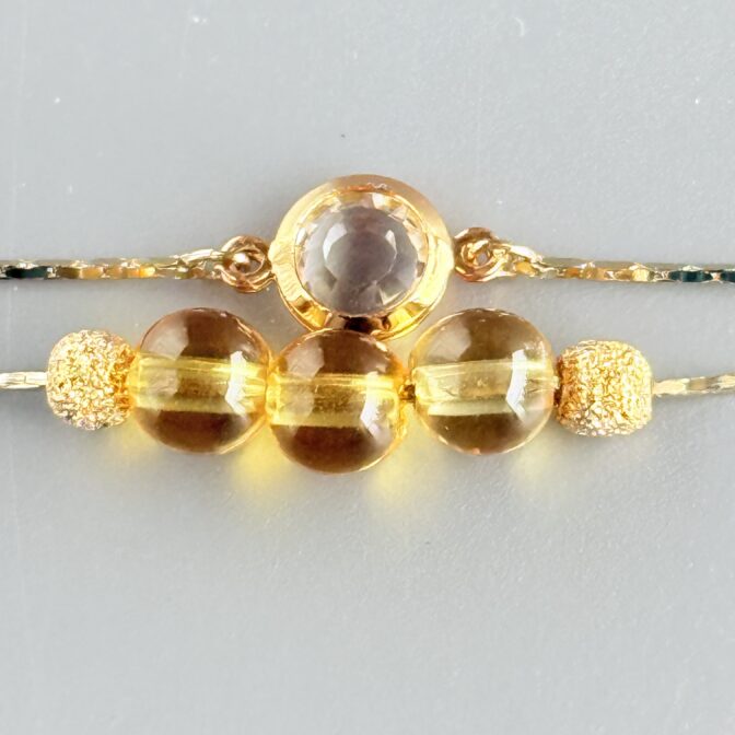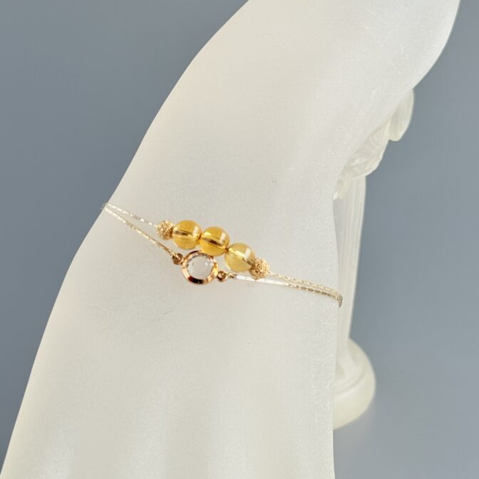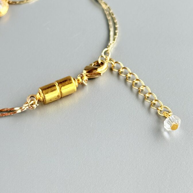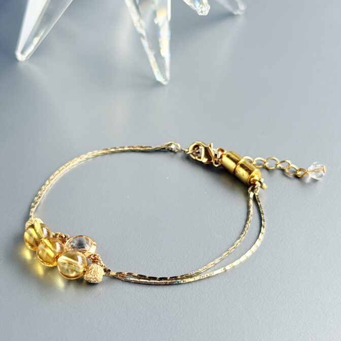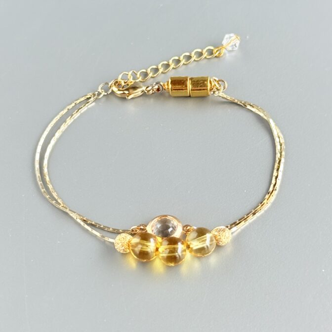 繊細なゴールドチェーンとシトリンが輝く、エレガントな2連ブレスレットです。
