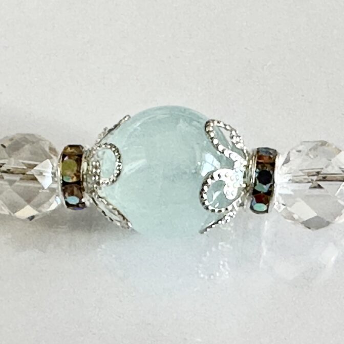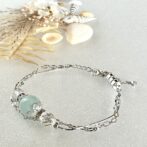 アクアマリンと水晶の2連シルバーチェーンブレスレット