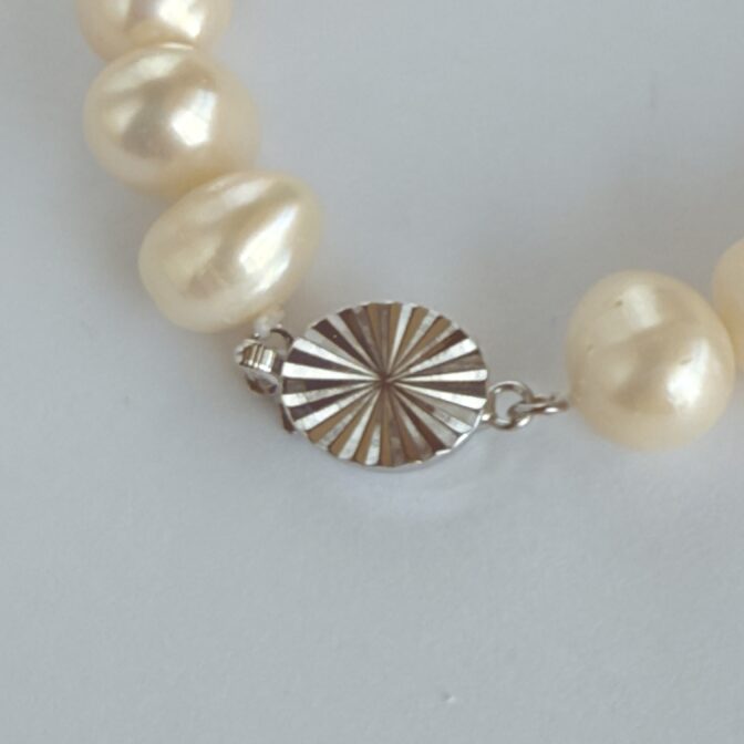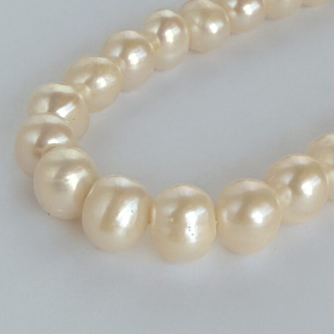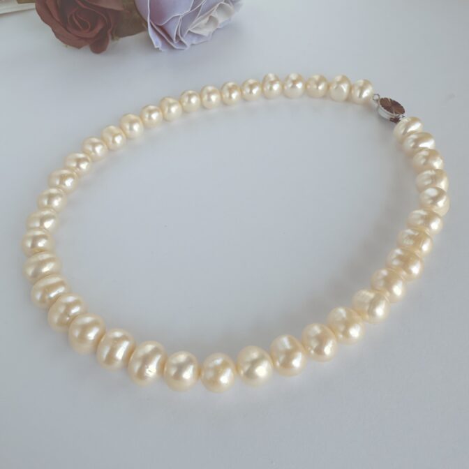 一つ一つ異なる自然な形状のポテト型淡水真珠ならではの照りと艶を持ち、身に着ける方の魅力を引き立てます。