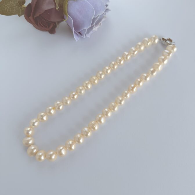 この大粒の淡水パールネックレスは、シンプルでありながら上品なデザインで、卒業式や入学式などのフォーマルな場面から、日常のおしゃれまで幅広く活躍します。