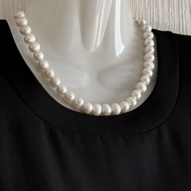 ・サイズ:パールの直径は約12mm、ネックレスの長さは40cmで、デコルテラインを美しく演出します。
