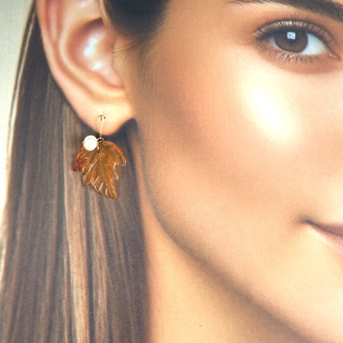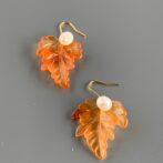 繊細に彫刻された葉のフォルムが、まるで秋風に舞う落ち葉のように優雅に揺れ、耳元を華やかに彩ります。