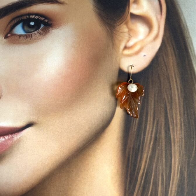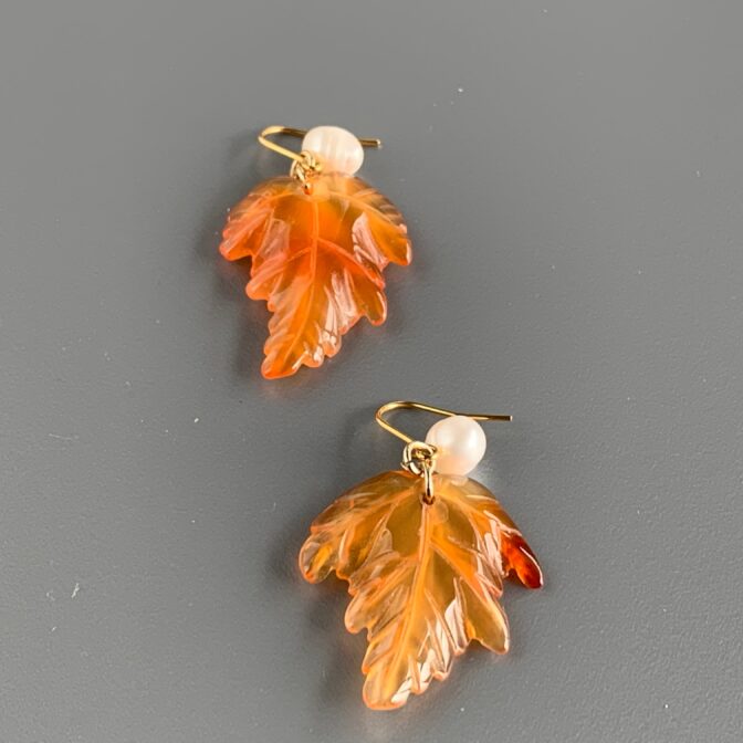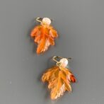 温もりのあるオレンジ色が魅力のカーネリアンのリーフ型ピアスです。