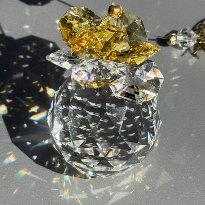 ミラーボールなので光を多く取り入れ、キラキラと反射し部屋の中に沢山の虹を作ってくれます。