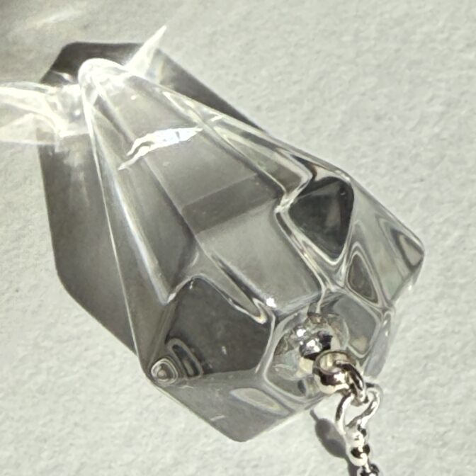 チェーンの先に4mmと6mmのキラキラ輝く多面式のクリスタルが付いております。