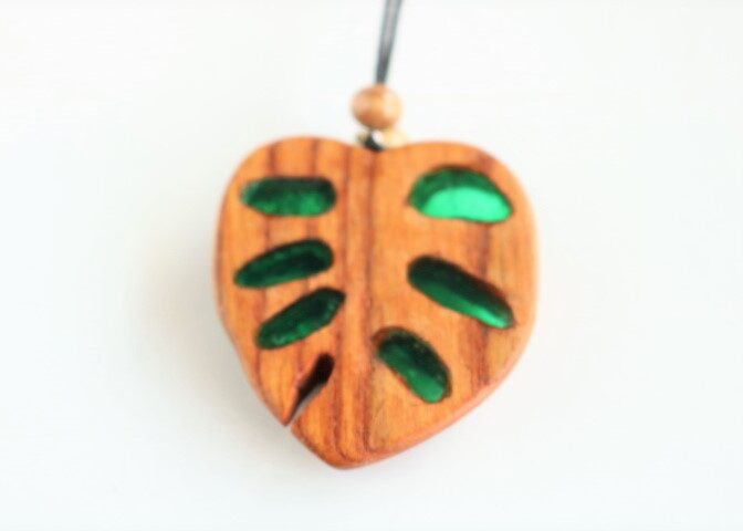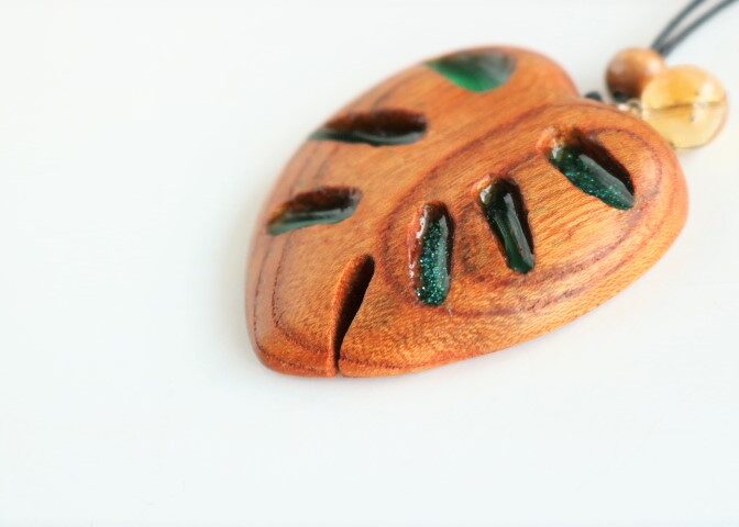 葉の緑色の部分は、レジンを流し込み色を付けております。