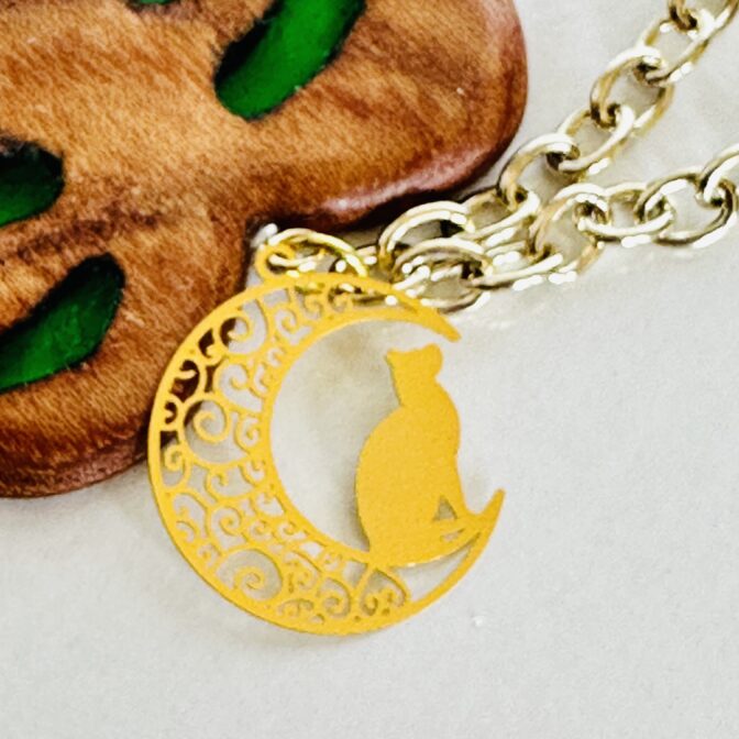 木の優し肌触りやぬくもりが感じ取れる素材に、可愛い猫のチャームを組み合わせました。
