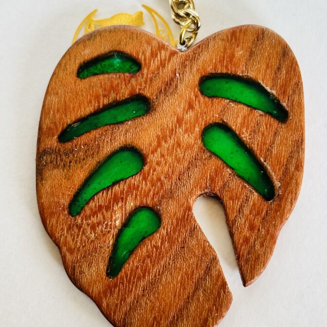 観葉植物モンステラの葉の形をしたバックチャームです。