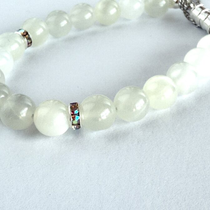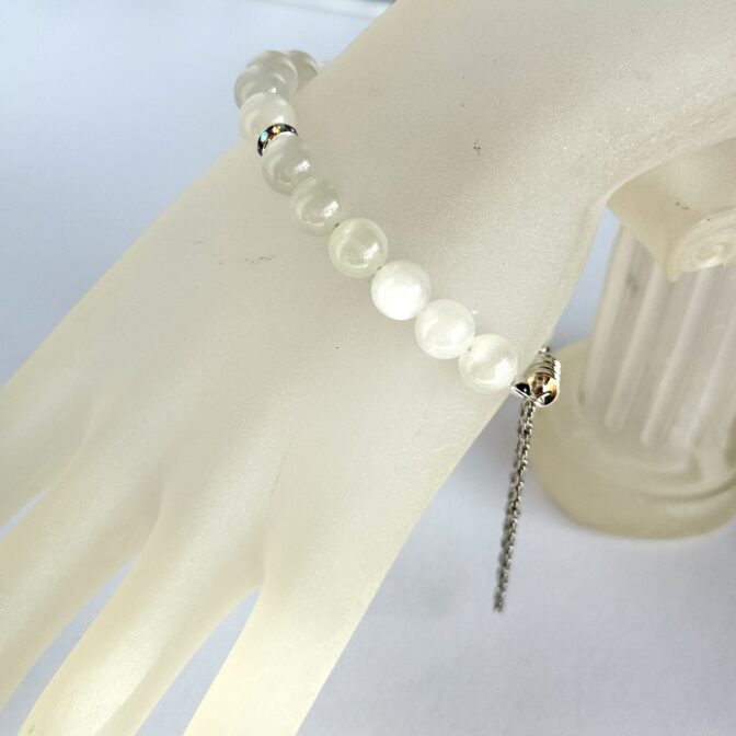 幻想的な輝きを放つホワイトムーンストーンの上品で洗練されたブレスレットです。