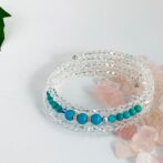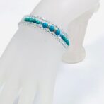 ターコイズの鮮やかなブルーと、キラキラと輝くガラスビーズが美しく調和した、洗練された三連ブレスレットです。