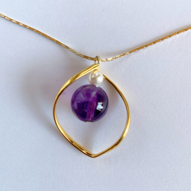 上質な天然アメジストとパールをあしらった、エレガントなネックレスです。