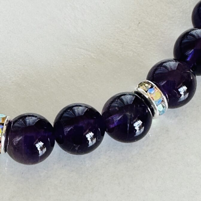 アメジストの間には、繊細な輝きを放つロンデルパーツをあしらい、上品な華やかさをプラスしました。