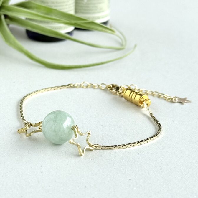 翡翠の持つ落ち着いた魅力と星の輝きが融合した、特別なブレスレットです。