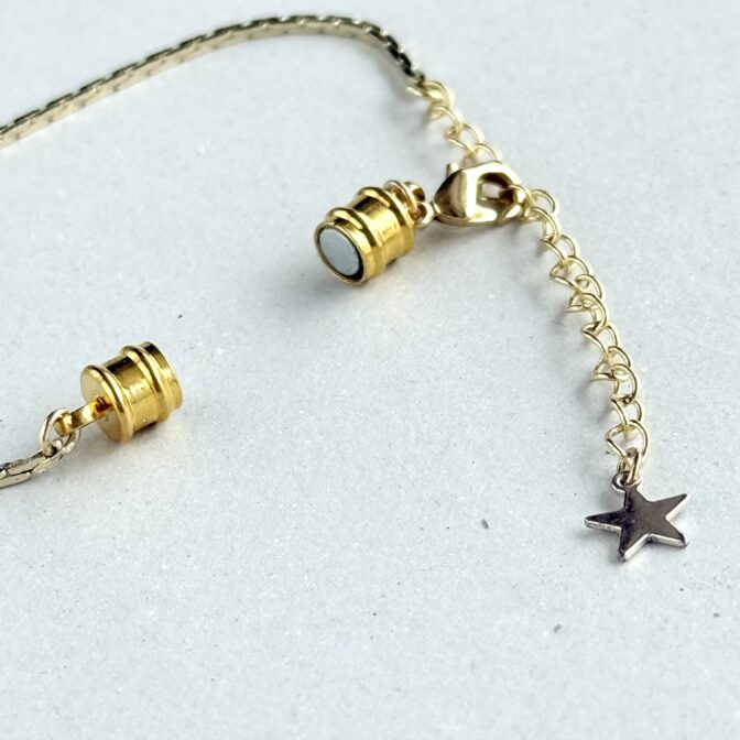 星型のパーツがさりげなく輝きを添え、シンプルながらも洗練されたデザインに仕上げました。