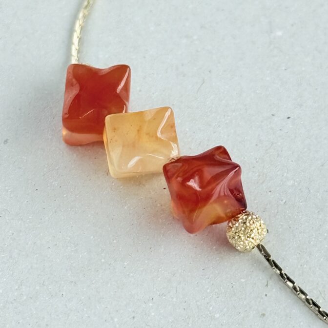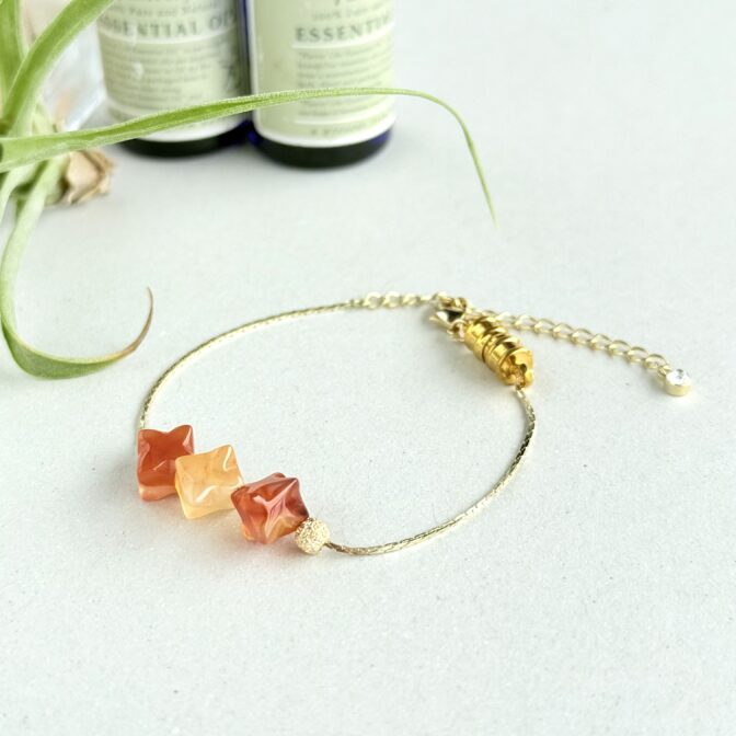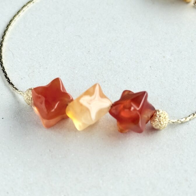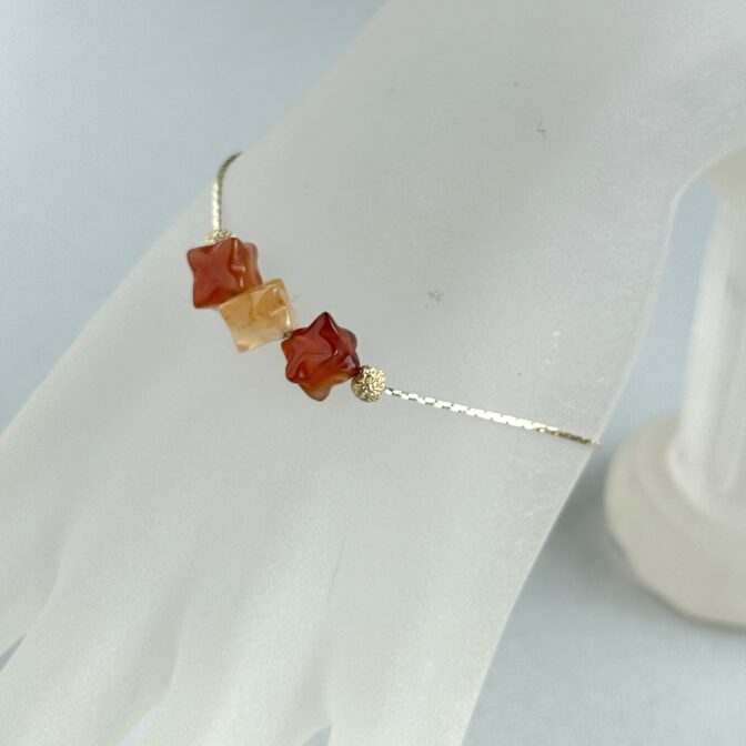 可愛らしい星形のカーネリアンが、手元で温かみのある輝きを放つブレスレットです。