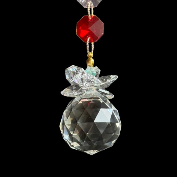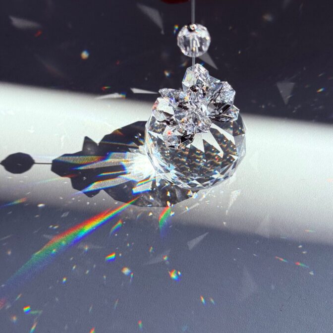 窓辺に吊るせば、朝日や夕暮れの光がスワロフスキーに反射し、やさしくキラキラと輝きます。