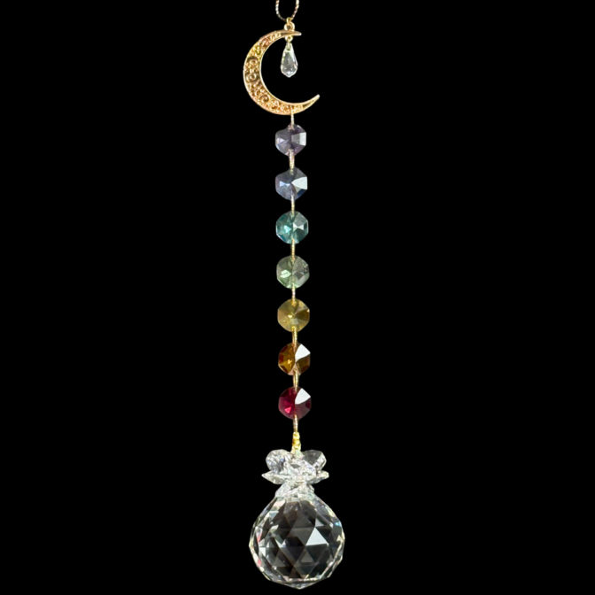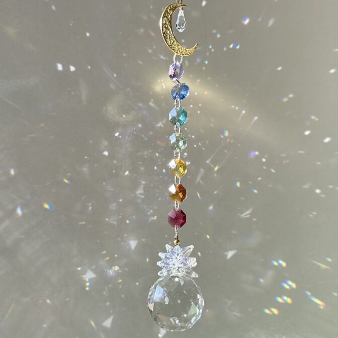 スワロフスキーの繊細な輝きに、神秘的な月のチャームを添えた特別なサンキャッチャー。