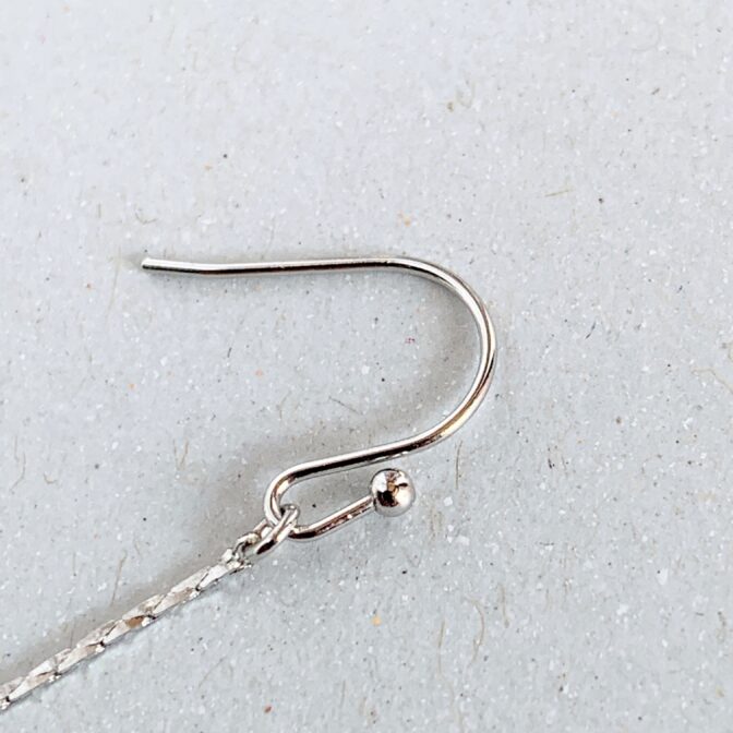 長めのチェーンが耳元で美しく揺れ、さりげなく華やかさを表現しています