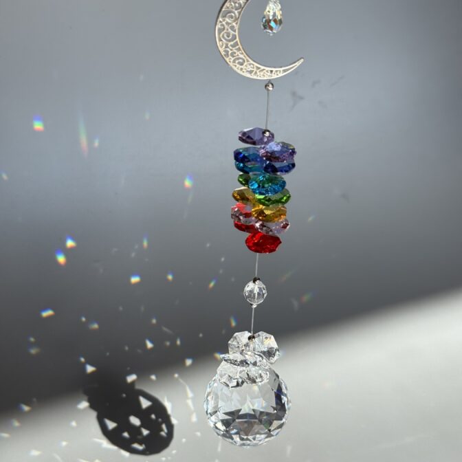 チャクラカラーで配置されてる7色の色がとても綺麗に輝いているサンキャッチャーです。