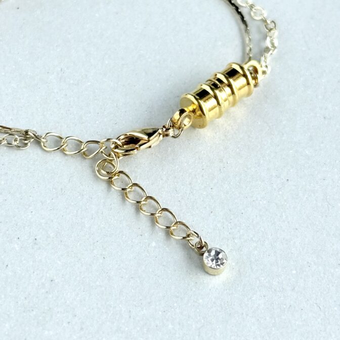 繊細に揺れる2本のチェーンが美しいレイヤーを生み出し、手元に上品な輝きをもたらします。