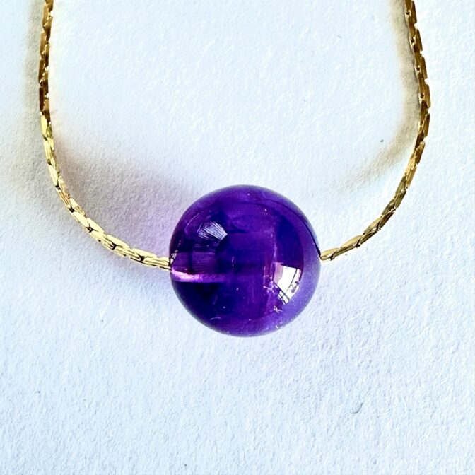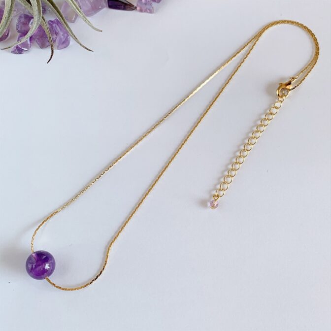 アメジストが胸元で優雅に輝く、シンプルで上品なワンポイントネックレスです。