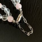 水晶の澄んだ輝きとローズクォーツの優しいピンクが織りなす、洗練されたデザインです。