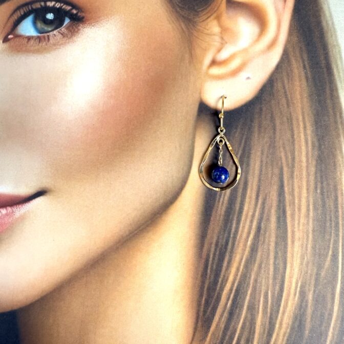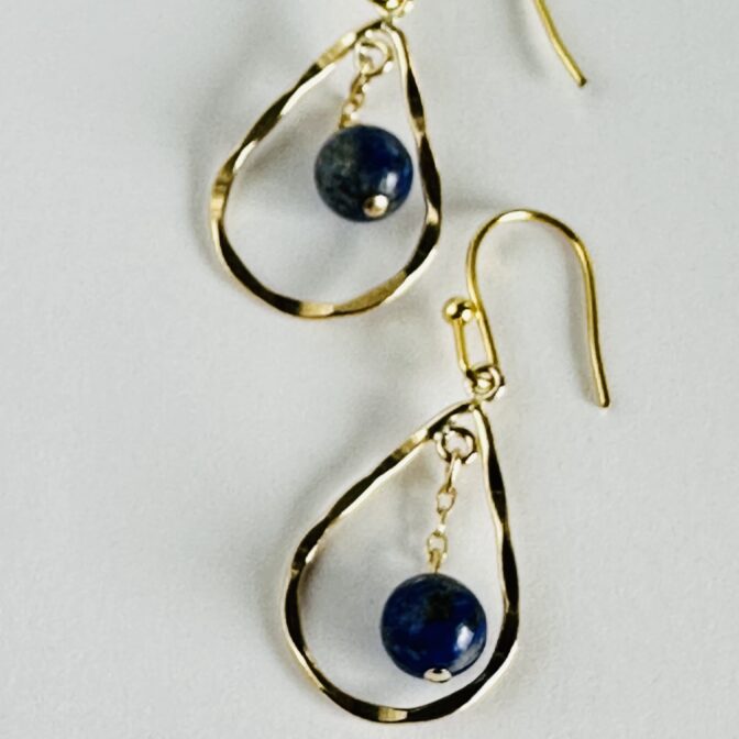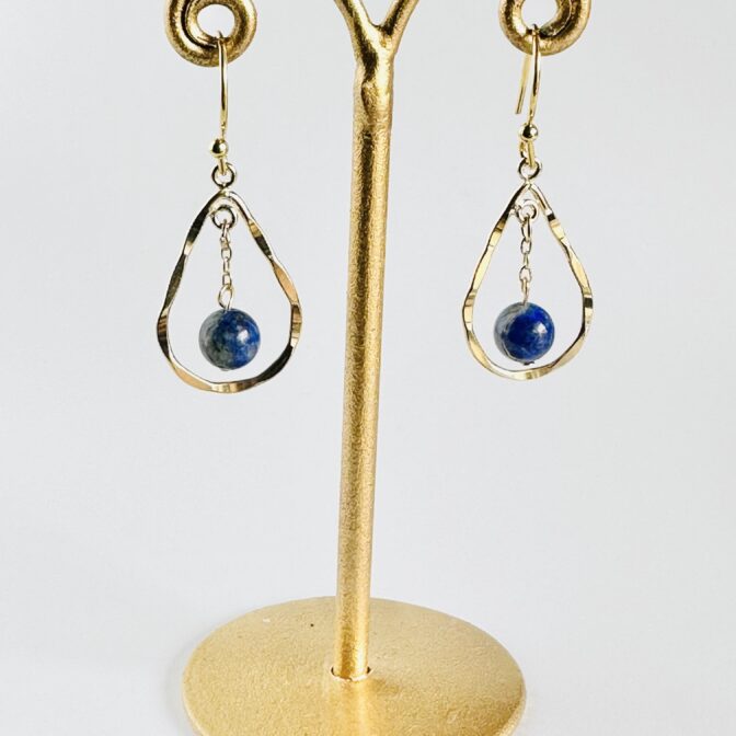 深く美しい夜空のようなラピスラズリが、繊細なチェーンの先で優雅に揺れるピアスです。