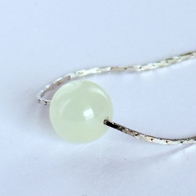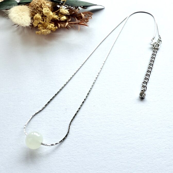 ホワイトムーンストーンが、胸元にそっと優しい光を添えるネックレスです。