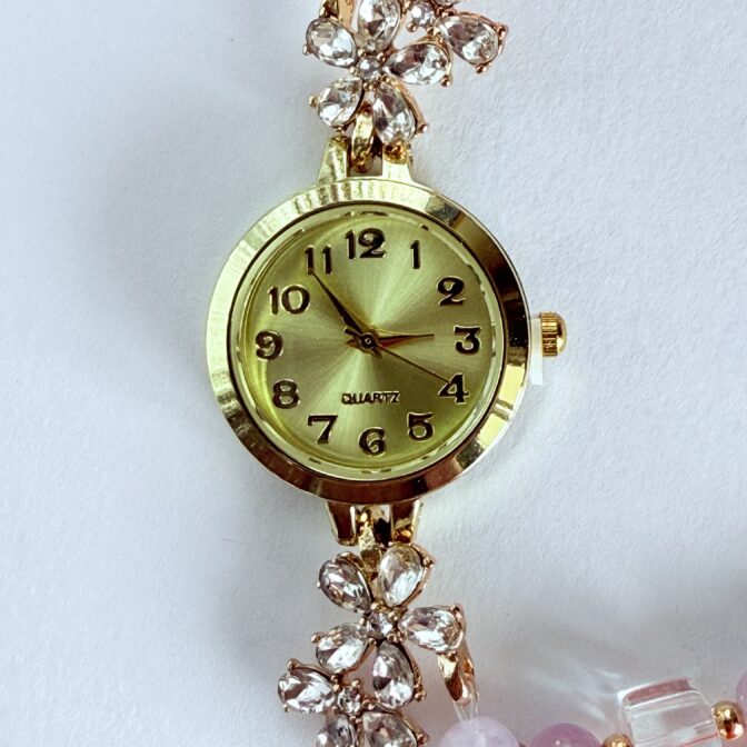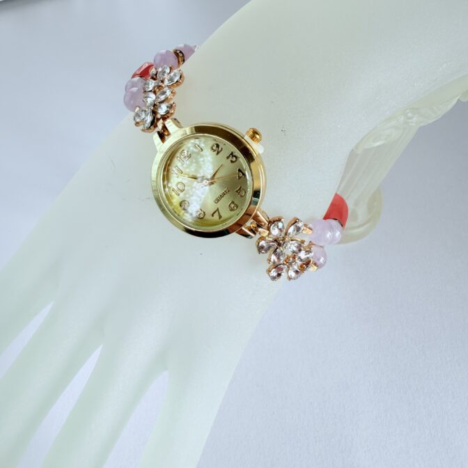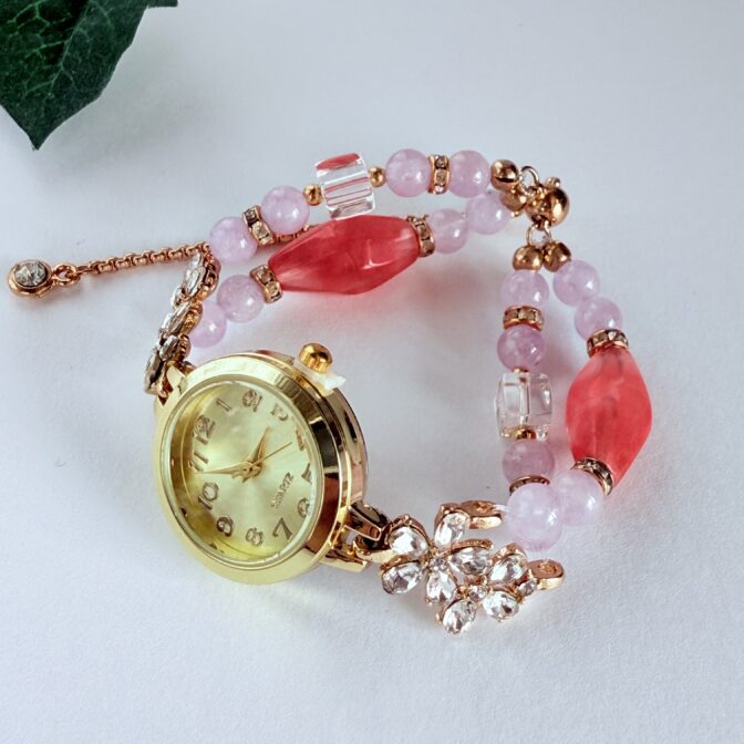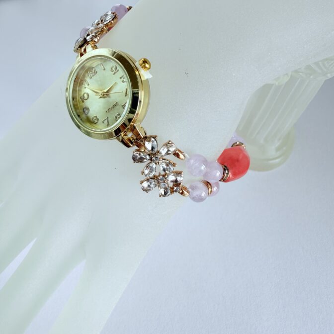 手元を華やかに彩る、ハンドメイドのブレスレットウォッチです。